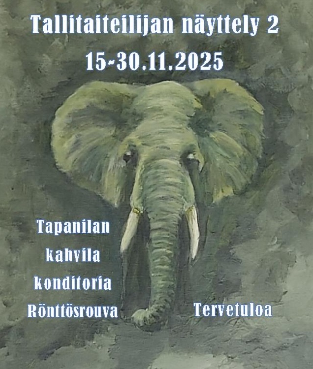 Tallitaiteilijan näyttely jatkuu uusin teoksin Tapanilassa, kahvila konditoria Rönttösrouvassa marraskuun loppuun asti. Tule tutustumaan taiteeseeni ja "Rönttösen" maistuviin tuotteisiin. Tervetuloa J-P Kosonen
