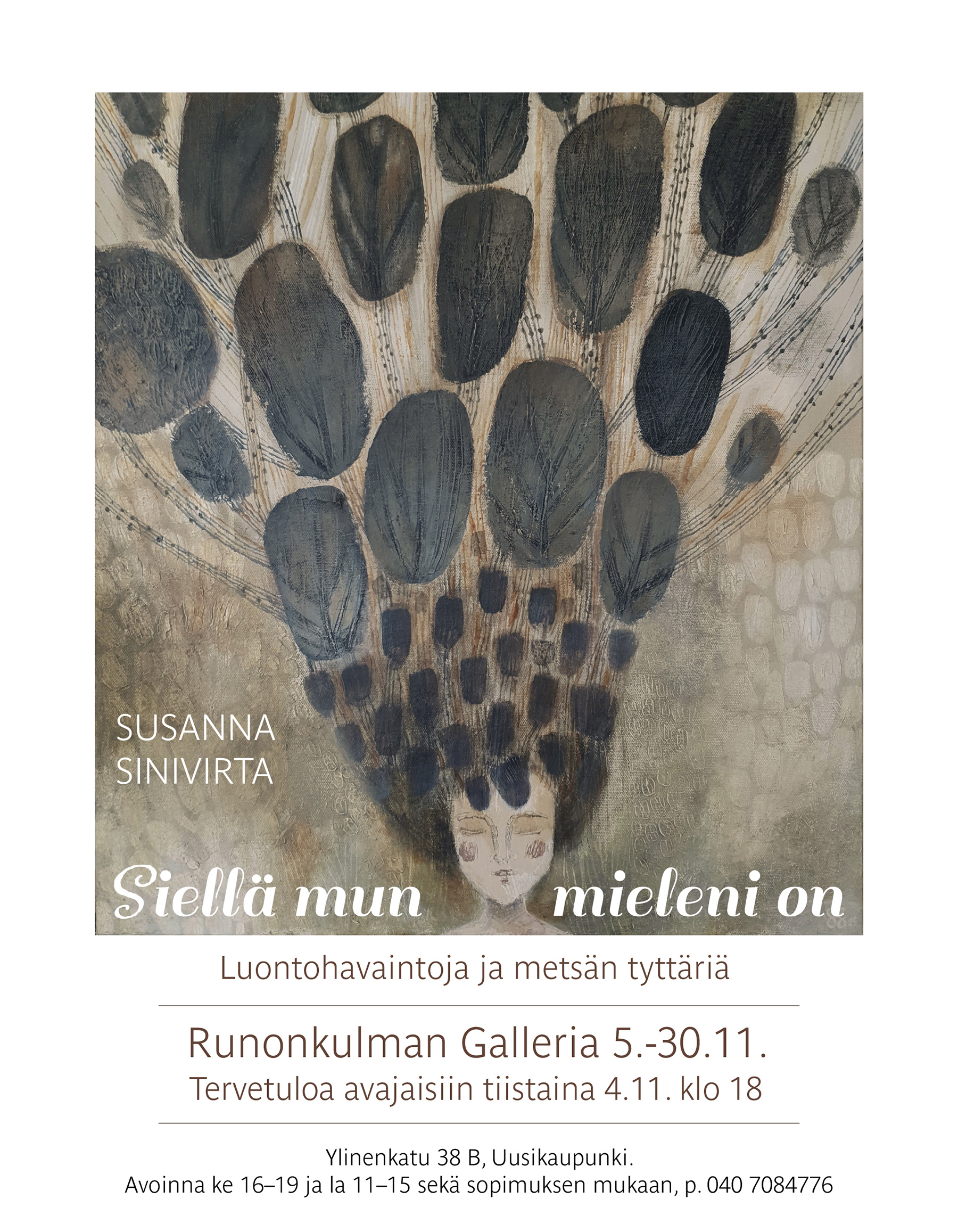 SUSANNA SINIVIRTA - Siellä mun mieleni on Runokulman Galleria, Uusikaupunki 5.-30.11. Avajaiset 4.11. klo 18 Tervetuloa!