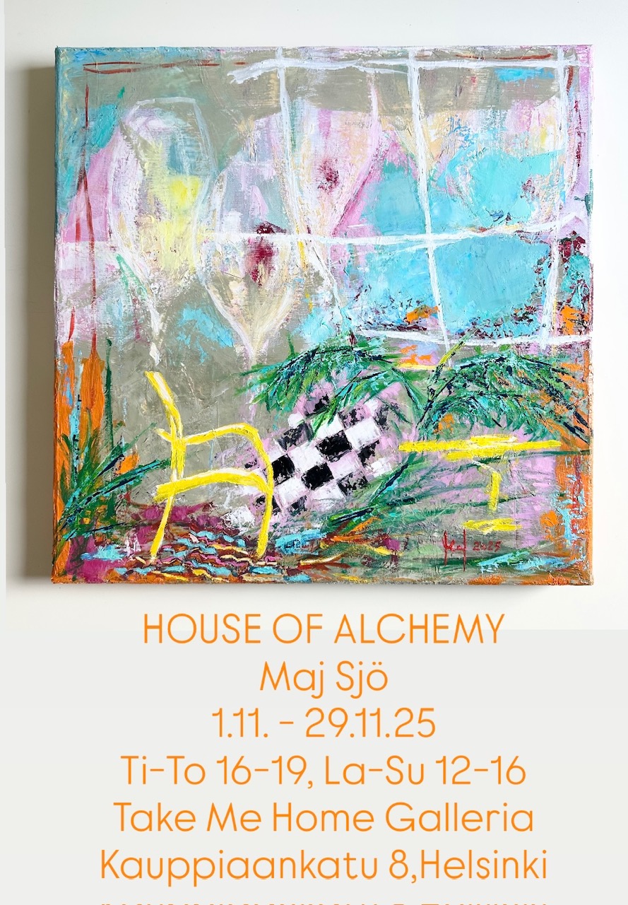 Maj Sjön taidenäyttely, House of Alchemy Take Me Home Galleriassa Helsingissä. 1.11.-29.11.2025 Avajaisia vietetään pyhäinpäivänä lauantaina 1.11. klo 14-18. Tervetuloa!