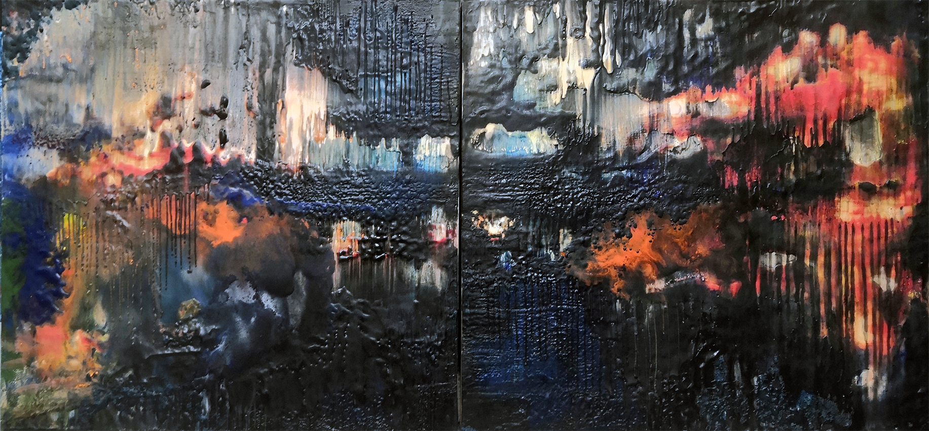 näkyvän takana 1 diptyykki_ 91 x 134 cm_2019_mehiläisvahamaalaus vanerille