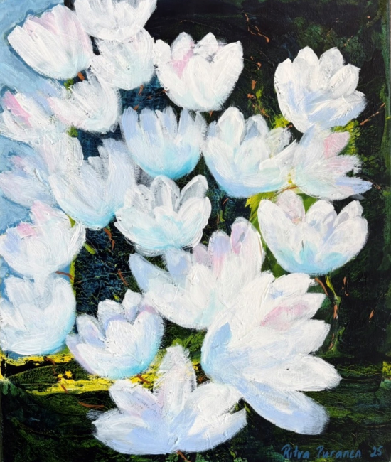 Suolammen lumpeet, 2025, 56x60, akryyli